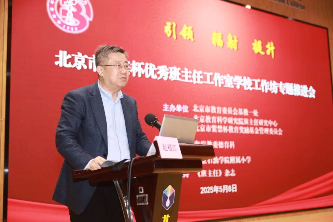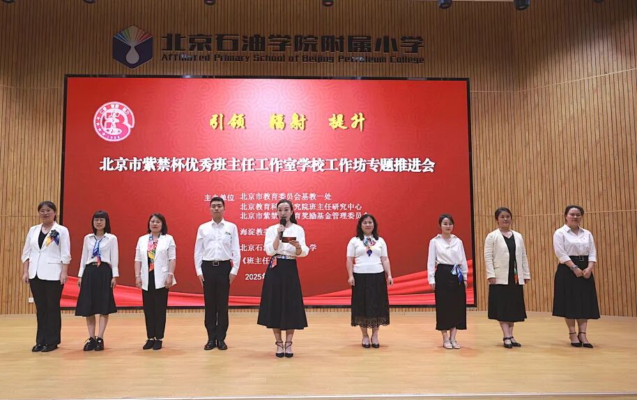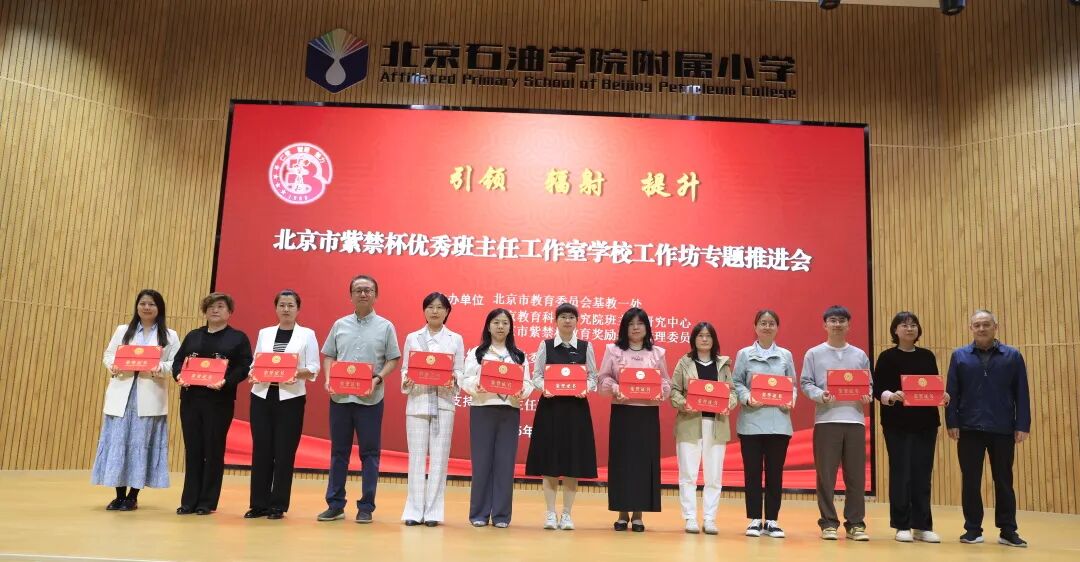 2025年5月8日,由北京市教委基础教育一处与北京教科院班主任研究中心、北京市紫禁杯教育奖励基金管理委员会联合主办,海淀教委德育科协办,北京石油学院附属小学承办的北京市紫禁杯优秀班主任工作室学校班主任工作坊专题推进会,于北京石油学院附属小学二里庄校区启幕。北京市教委领导、教科院资深专家、紫禁杯管委会成员及第三至第五批工作坊主持人等200余位教育领域骨干齐聚一堂,共商新时代班主任专业发展大计。作为承办方,石油附小以系统性的育人实践与创新性经验,成为整场活动的核心焦点。