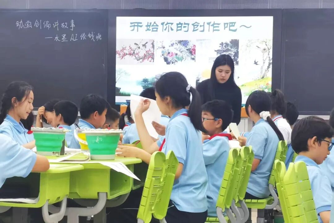 本课程围绕“水墨AI绘钱塘”主题,在知识与技能层面,课程通过AI动画生成软件的原理讲解与案例演示,引导学生理解“静态图像动态化”的技术逻辑。教师在讲授环节结合《钱塘湖春行》国画作品,展示AI如何通过运动轨迹模拟、色彩动态映射等算法,将水墨线条转化为具有韵律感的动画元素,使学生建立“艺术创作+技术实现”的双维认知框架。这种深度合作不仅停留在工具使用层面,更注重培养学生理解技术如何赋能艺术表达的思维模式。