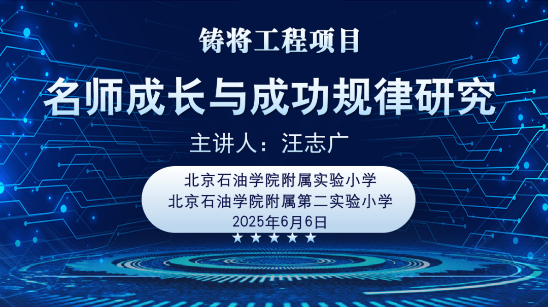为提升教师专业素养,6月6日下午,石油实验小学开展了“铸匠工程”系列培训活动。此次活动特邀全国知名教育专家汪志广老师,以《名师成长与成功规律研究》为题开展讲座,石油实验小学、石油第二实验小学两校教师共同参与。