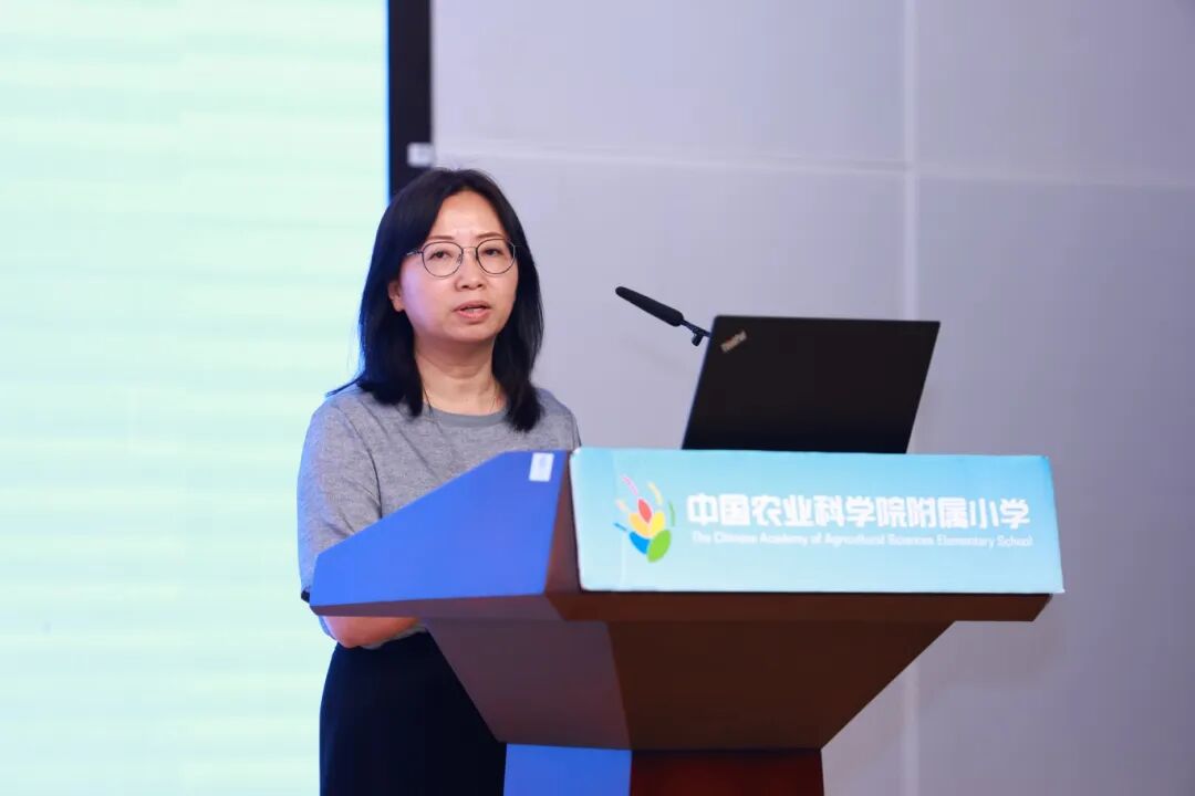 随后,农科附小教学主任葛芬以《益智学具驱动:教与学新路径探索》为题,分享了学校如何以课题为引领,探究益智学具驱动数学课堂教学的创新实践。学校基于教师教学的实际需求和学生在数学学习中的真实问题,构建了基础型、拓展型和实践创新型的益智学具课程。课程巧设益智学具情境,推动游戏化学习创新,促进学生综合素养的发展和教师教学能力的提升。