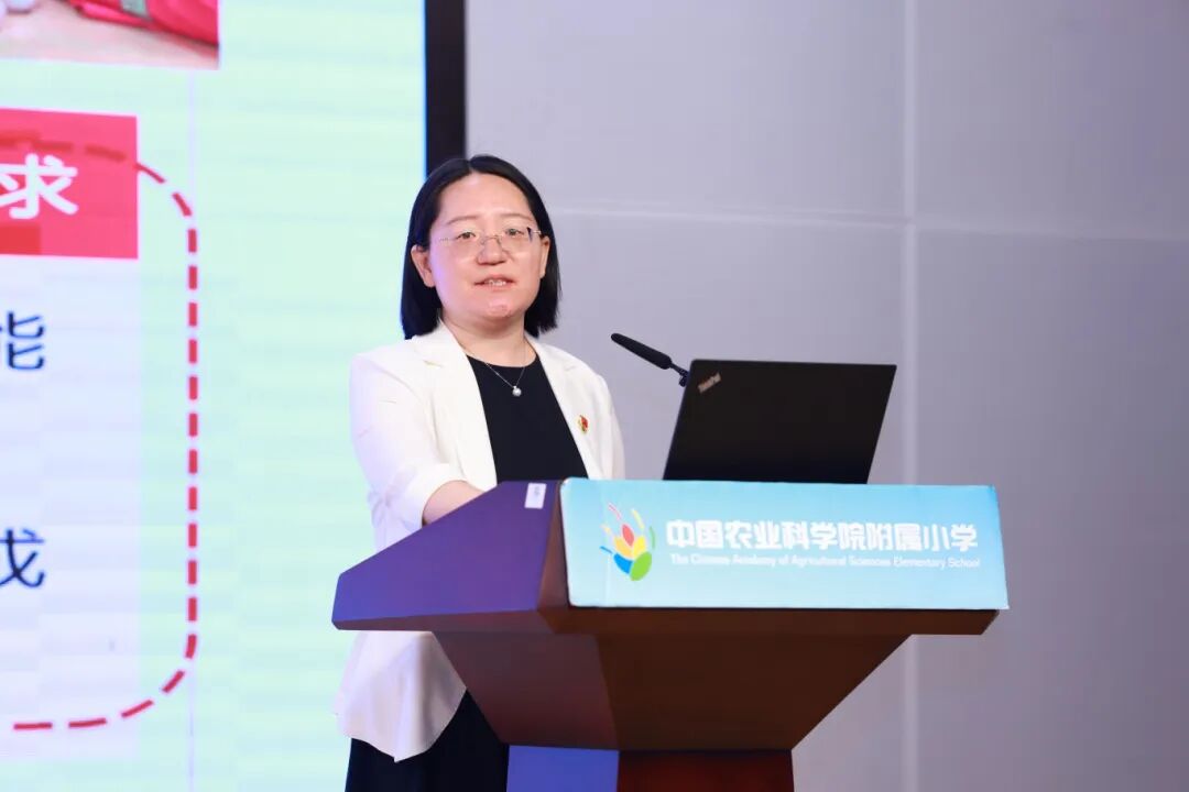 农科附小教学主任谢林娜在《课程为帆,游戏作桨,驶向数学的快乐港湾》的分享中,全面展示了学校益智学具社团开设背景及实践探索。学校构建“三阶段三品类”课程体系,以“双轮驱动,共学共进”的教学模式,在不同年级开设了数学游戏、数学魔术、数学小制作等社团,进阶式开发学生数学思维,助力学生成长。