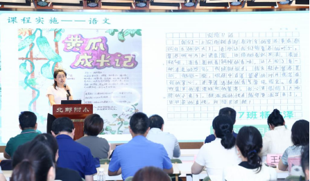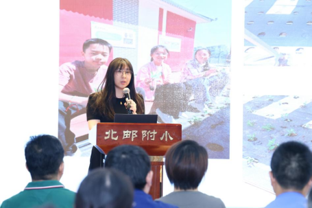 “云端绿洲”劳动课程设计注重学科之间的关联性和协同性。王慧媛老师详细讲解了课程设计思路,本课程将劳动教育与语文、数学、美术等学科教学有机融合,分为准备、播种、养护、收获四个阶段 。李靓老师介绍了清明前后的种植过程以及养护阶段的“该出手时就出手”系列课程,包括如何除草、如何帮助爬藤类植物克服农场风大的挑战等;王鸿霞老师和李佳川老师从各学科角度展示了跨学科实践活动:数学学科从测量土地、划分区域、数据测量开始,到利用复式统计图知识分析植物生长情况;语文学科注重提升学生语言综合应用能力,引导学生撰写观察日记、进行创意写作,还结合口语交际“我是小小讲解员”评价标准进行讲解;美术学科设计了风格各异的农场标识牌,运用拍摄、绘画等多种方式,绘制植物生长笔记,设计蔬菜包装袋;音乐学科则结合《丰收锣鼓》引导学生创编节奏。通过跨学科联动,让学生深刻体会到知识是相互关联的,如同根系深深扎根于生活的土壤。