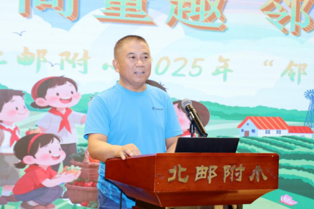 学校刘书记上台寄语。他详细地介绍了“云端绿洲”屋顶农场的劳动教育实践,从农场的规划建设,到同学们参与种植的点点滴滴,让大家对农场的发展有了更全面的了解。