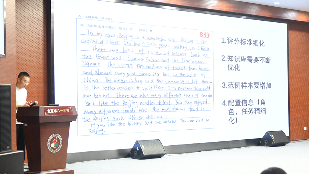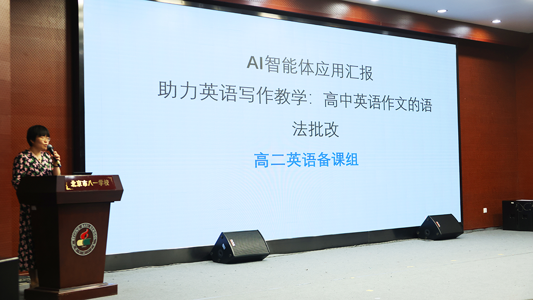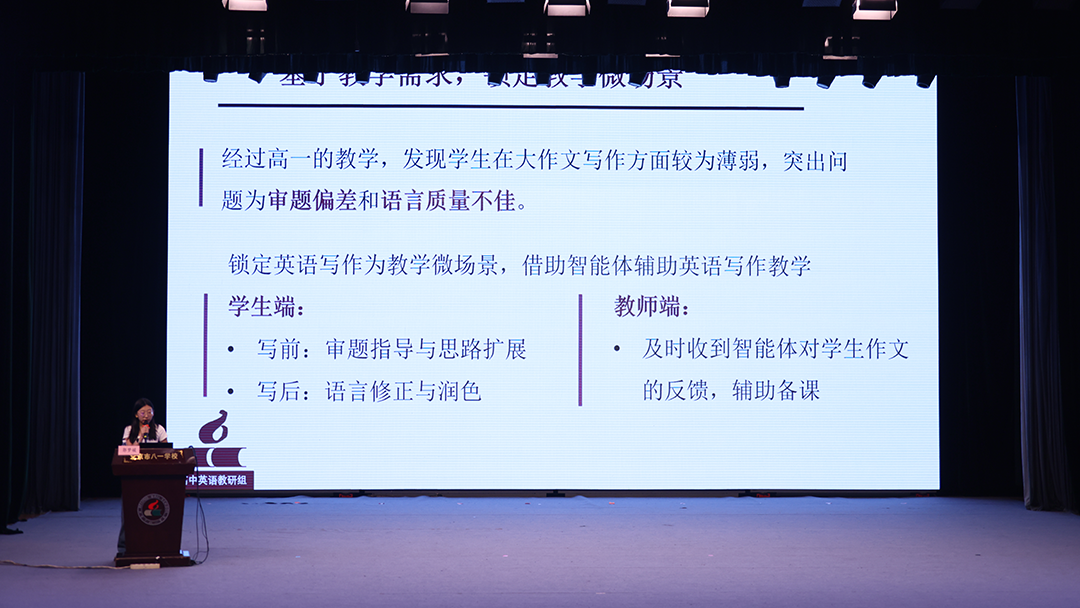 高中英语组郭梦媛老师带来的 “高中写作评改智能体” 则聚焦高中英语写作痛点,不仅能识别语法和拼写错误,更能深入分析句式的多样性和文章的逻辑结构等并提供具体反馈,实现学生写前审题指导+写中修改完善+写后人机、师生、生生互评的微教学场景,为学生写作能力的进阶提供了强有力的智能辅助。