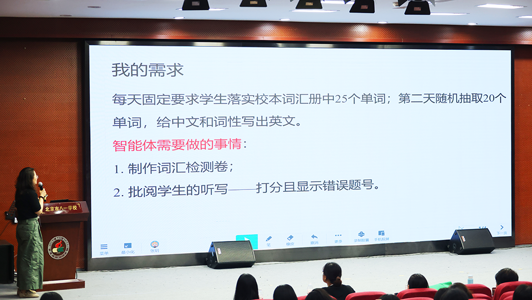 她强调,智能体的革命性在于:将AI从“对话工具”升级为“认知协作体”,真正实现教与学的场景化赋能!本次研训初心凝练为两个“fu”字:一是减负的“负”,通过智能体自主执行教学任务,为教师减负,解放教师的创造力;二是赋能的“赋”,让智能体成为教师的“认知外脑”,深度参与高阶思维培养。此次培训目的,在于让技术从“可用”走向“懂教”,用“增能”实现“减负”!