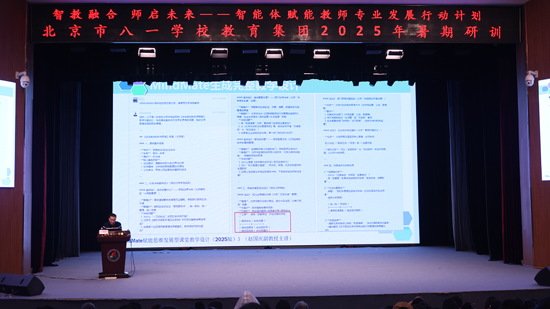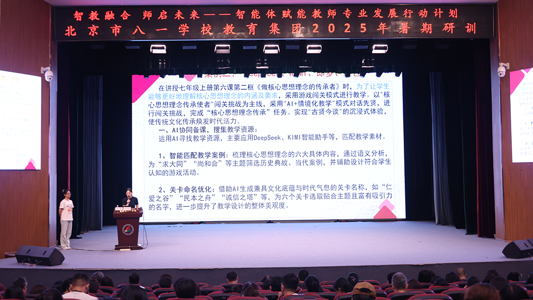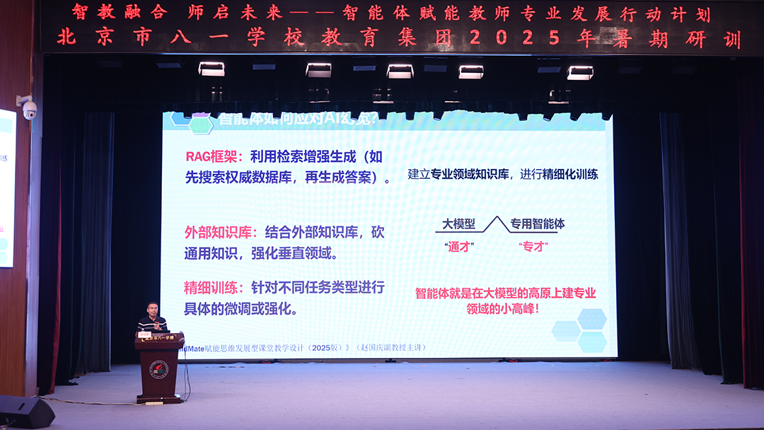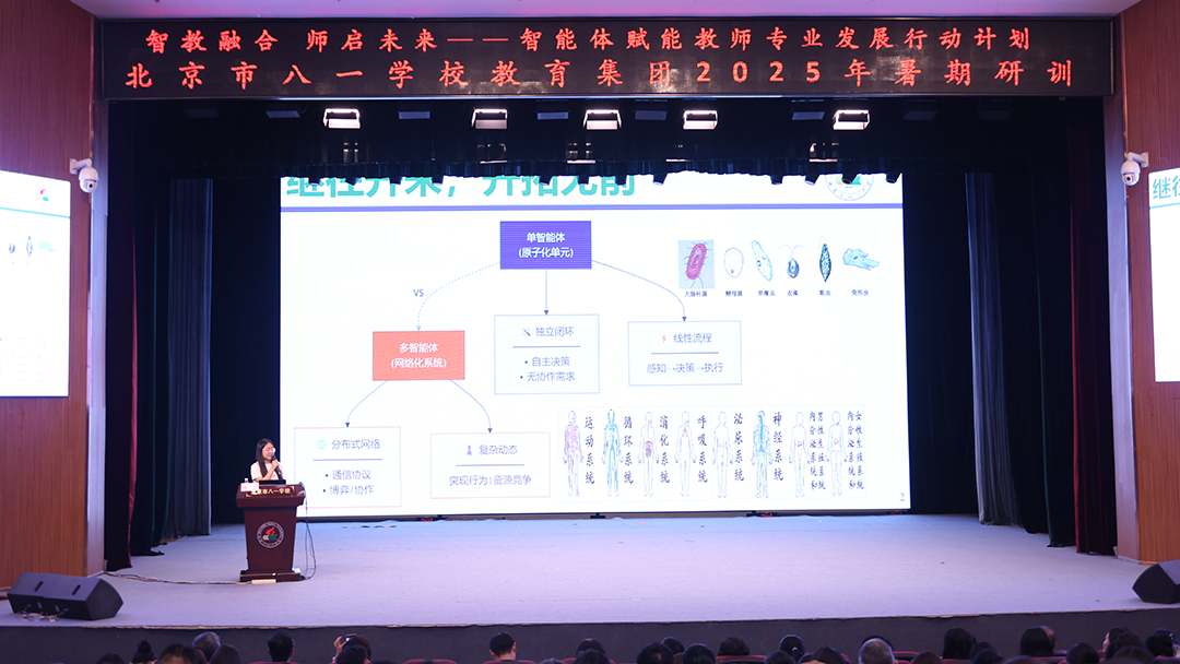 盛夏7月,骄阳似火,蝉鸣声声,正是万物蓬勃生长的季节。在这燃情夏日里,北京市八一学校教育集团的教师们以饱满热情和坚定信念,齐聚一堂,开展“智教融合、师启未来”暑期研训活动。2025年7月13-14日,聚焦教育智能体(Agent)技术前沿应用的研训活动,在北京市八一学校持续展开。本次研训旨在深入探索人工智能体如何赋能教育教学设计与实践创新,推动教育数字化转型。暑期培训正式进入更具实践导向的“智能体研训工作坊”环节。