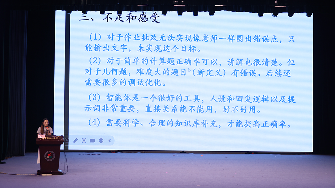 汇报结束后,张林老师提出三点:新模式——老师们不再只是“用 AI”,而是把智能体嵌入备课、上课、评价、管理的完整链条,形成了可复制的“八一模式”;沉浸式——卡通导游、数字孔子、政协提案模拟,让学生在可视、可听、可交互的情境里学习,课堂注意力明显提升;可重复——所有智能体都部署在本地服务器,教案、数据和提示词全部留存在校内,下一届老师可直接调用、二次开发,避免“换一届就重来”。