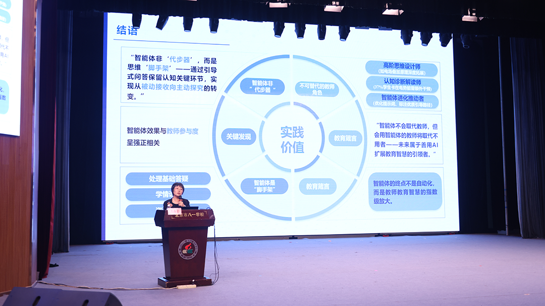 她强调:“教育智能化的浪潮,不是我们要被动迎接的挑战,而是我们主动塑造未来的契机。您设计的每一个智能体,都在为教育注入新的可能;您探索的每一步,都在书写“智教融合”的八一范式。让我们以技术之智,启教育之新!”