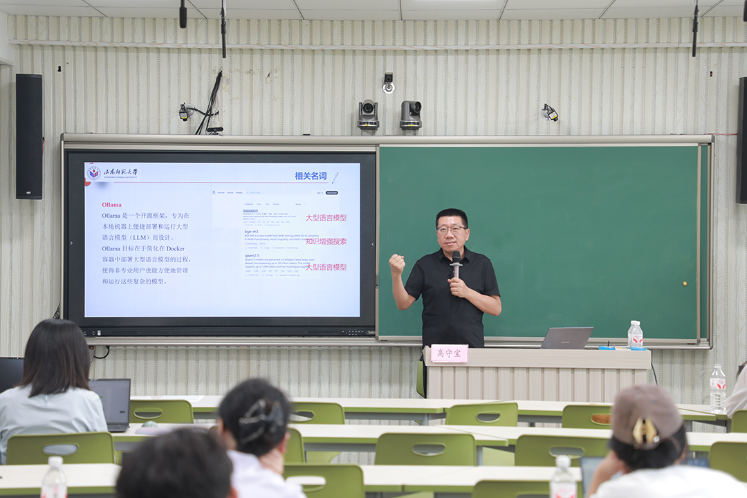 山东师范大学高守宝教授带来《教育智能体本地化部署与应用》专题讲座,研训紧扣教育数字化转型需求,从技术实操与教育应用双维度展开。高教授围绕Docker 构建虚拟运行环境、Dify与ollama的协同使用展开讲解,逐步拆解利用技术工具进行智能体本地化部署的流程,指导参训教师安装语言模型与知识增强模型,深入学习开发认知诊断智能体的方法。讲座不局限于技术教学,还引导老师们思考数据安全与教师适应等教育智能发展关键问题,让技术学习与教育价值反思并行。