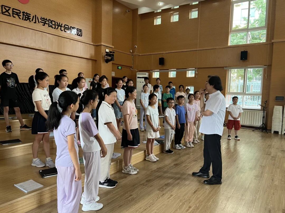 刚刚过去的6月,阳光合唱团在北京合唱协会的支持下,在国家图书馆艺术中心(原国图音乐厅)举办以“童声和融 民族飞扬”为主题的合唱专场音乐会。盛夏7月,他们又带着精心排练的曲目登上全国舞台,面对各地强队美丽绽放:四年级同学眼神里的坚定、五六年级声线中的稳定、毕业年级同学情感中的不舍,共同汇聚成打动全场的“和•融”力量,最终摘得最高荣誉!