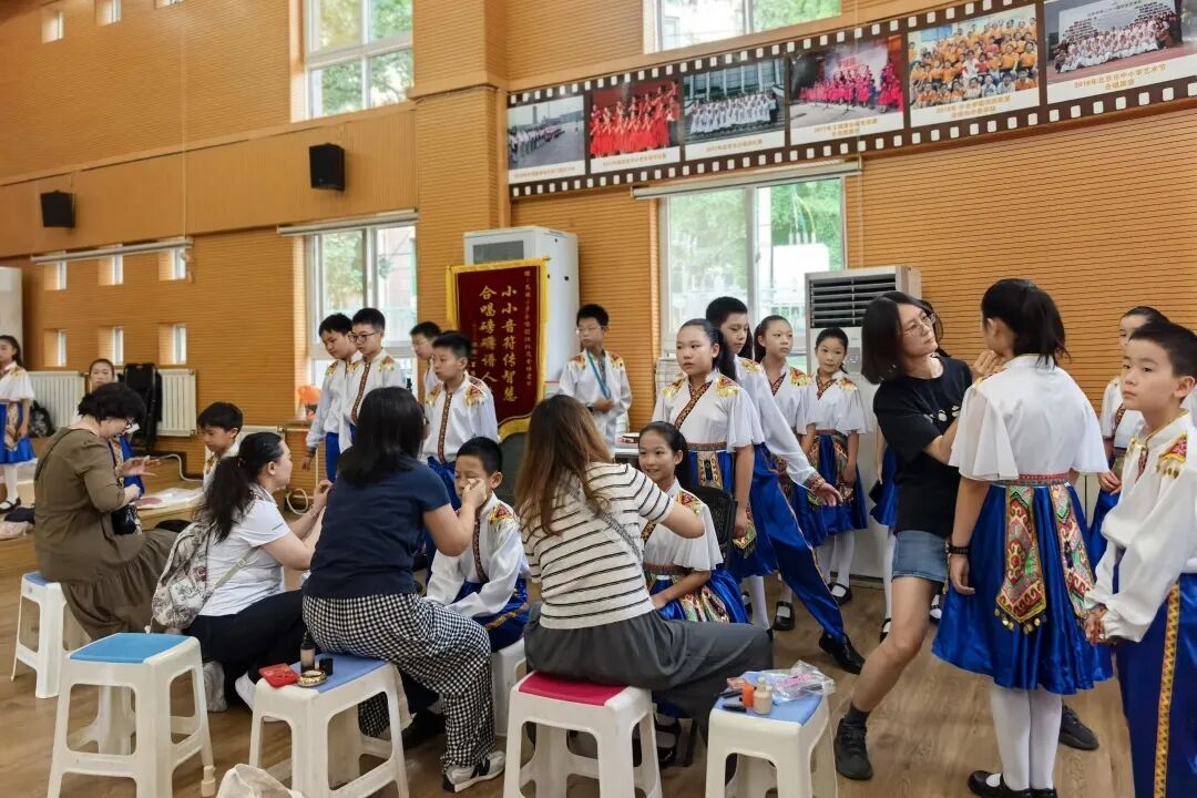 从气息的稳定控制到音准的精准把握,从声部的平衡呼应到情感的同步传递,每一处细节都凝结着汗水。无伴奏六声部的新作品《假如梦可以买》是本次比赛团员面临的最大挑战:既要在没有乐器支撑的情况下保持音准稳定,又要让六个声部像精密仪器般错落交替。四年级同学瞪大双眼专注模仿、反复跟唱刻苦训练,高年级学长主动示范、逐句帮带耐心纠正。尤其是即将毕业的六年级同学,始终以“站好最后一班岗”的责任感投入训练,从未缺席一次排练,用行动诠释着校训:“做最好的我,在我最好的方面”。