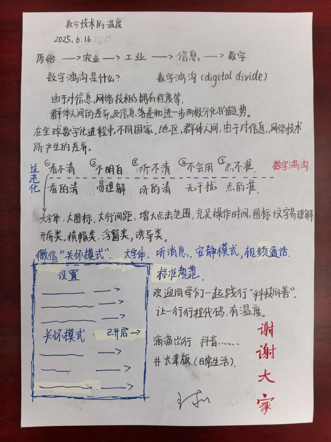 肖妈妈“科技向善”的理念在课堂里回荡:科技之光,应当照亮每一个需要温暖的角落——不仅是年迈的长辈,还有听障、视障的朋友、需要特别支持的群体。