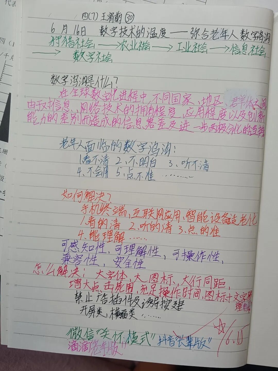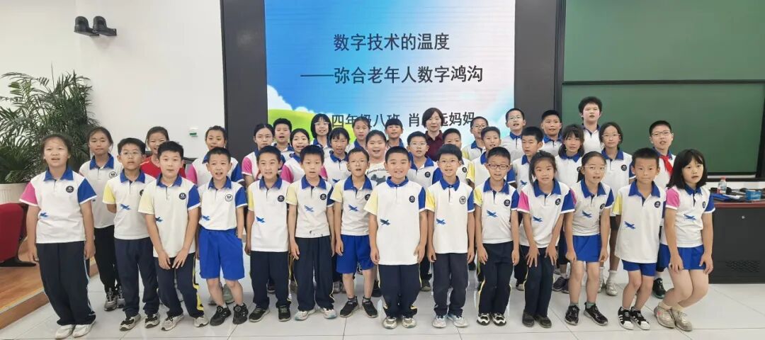 肖妈妈以“数字技术的温度”为题,带孩子们走过人类从原始社会到数字社会的发展历程,也轻轻揭开了当下一个令人深思的议题:当社会飞速向前,老年群体该如何跨越横亘在眼前的“数字鸿沟”?
