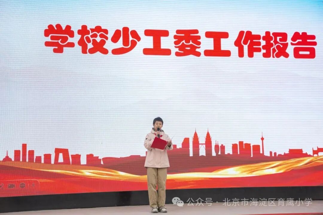 学校少工委主任赵校长,学校党支部副书记郝副校长发表少工委工作报告并为大会致辞,肯定了少先队工作取得的成绩,勉励全体少先队员以 “新时代好少年” 的标准严格要求自己,在学习中增长本领,在实践中锤炼品格,努力成长为担当民族复兴大任的时代新人。