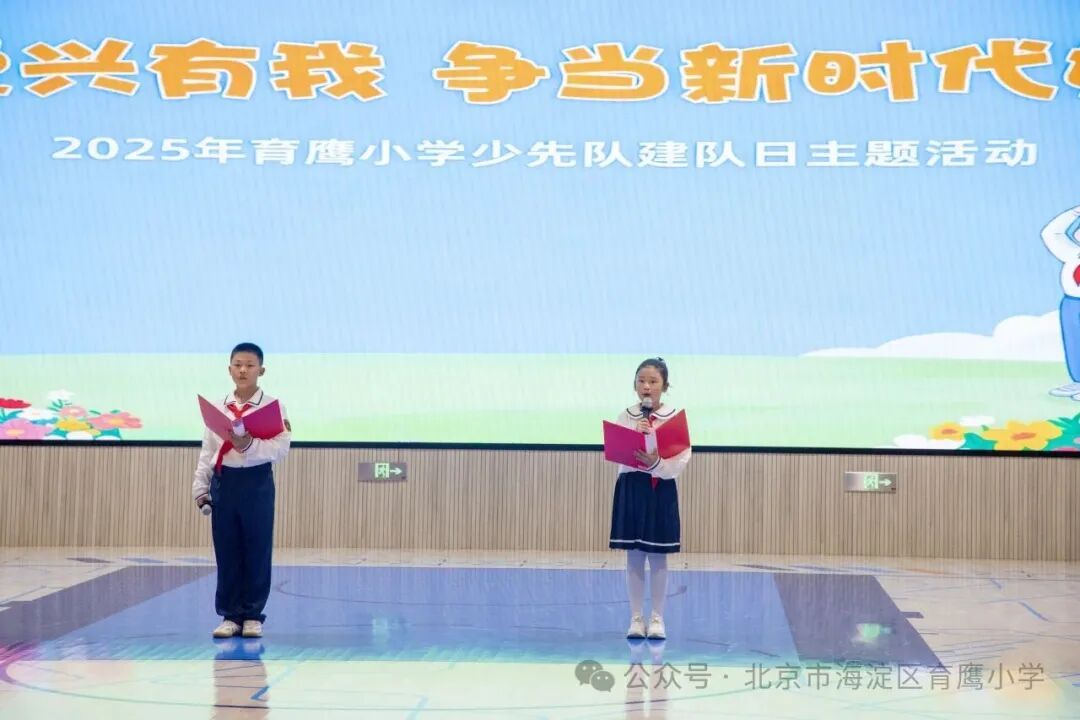 队旗猎猎映初心,领巾飘飘展风华。在金秋这个满载希望的季节,为庆祝中国少年先锋队建队 76 周年,引导少先队员厚植家国情怀、勇担时代使命,10 月 11 日,中国少年先锋队北京市第二十中学附属育鹰小学以 “强国复兴有我 争当新时代好少年” 为主题,隆重召开 2025 年代表大会。学校少工委主任,全体校领导、中队辅导员老师与少先队员齐聚一堂,共赴这场属于少年先锋队的盛会。