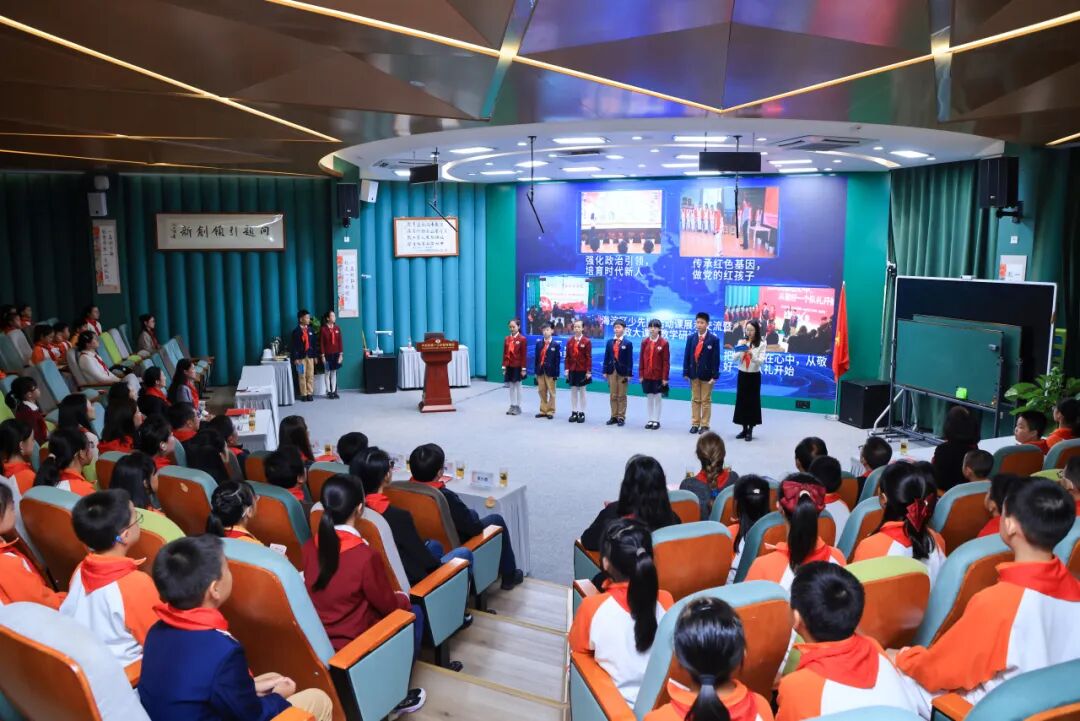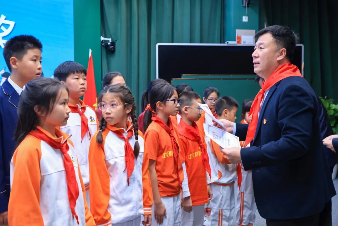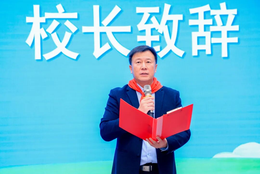 商红领校长为大会致辞。他首先代表学校向与会的领导、辅导员老师们表示衷心感谢,向全体少先队员致以诚挚祝贺。商校长带大家重温习近平总书记在中国少年先锋队第九次全国代表大会贺信中的嘱托,并向队员们提出三点殷切的希望:一做“红色基因的传承者”,从小听党话、跟党走,做党和人民的红孩子;二做“中华文脉的守护者”,在诵读经典、践行美德中焕发文化自信;三做“全面发展的奋斗者”,勤学善思、锤炼本领、强健体魄、培养坚韧的意志,像小树苗一样“长得正、长得壮、长得好”。商校长表示学校将始终坚持“党建带团建、队建”,深化家校社协同育人,为少先队员们搭建更多成长舞台!