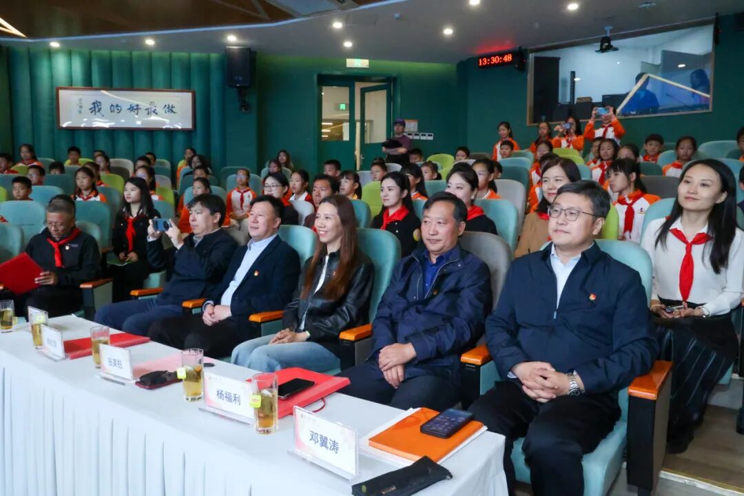 鲜红的领巾,映衬纯真的信仰。少先队员代表为参会领导嘉宾佩戴红领巾,敬队礼。这一刻,敬意与温情交织,光荣与梦想在葵园熠熠生辉。