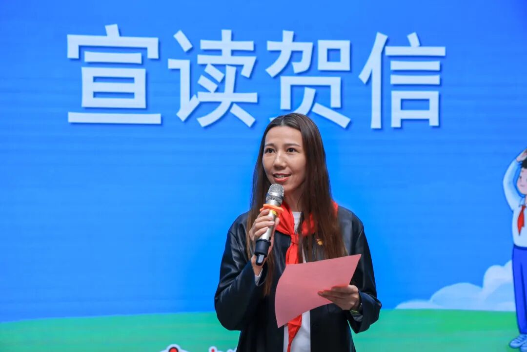 共青团北京市海淀区中关村学区委员会书记、中关村学区少先队总辅导员张英钰宣读贺信