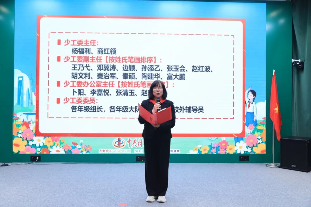 中关村第一小学教育集团大队辅导员张玉会主任宣读第四届少工委名单