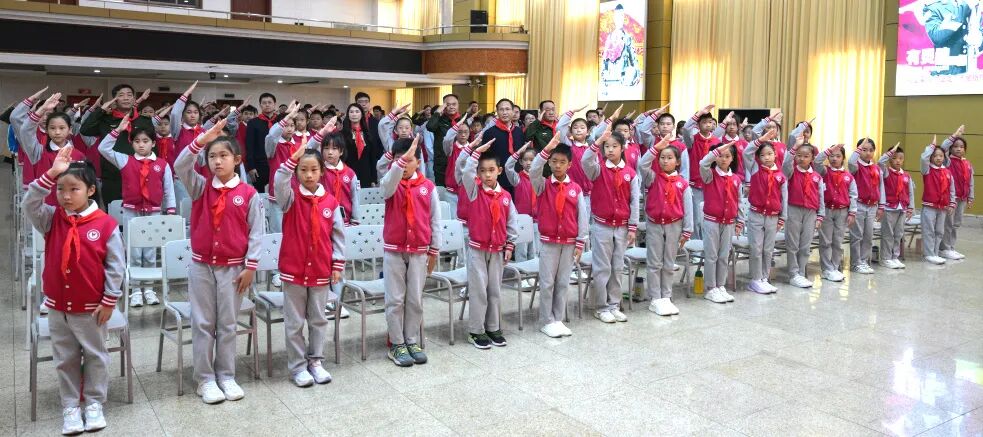 学校少工委主任马春亚勉励队员们:要以英雄为榜样,从小听党话、跟党走;以实践为课堂,德智体美劳全面发展;以复兴为己任,努力做党和国家事业的接班人。