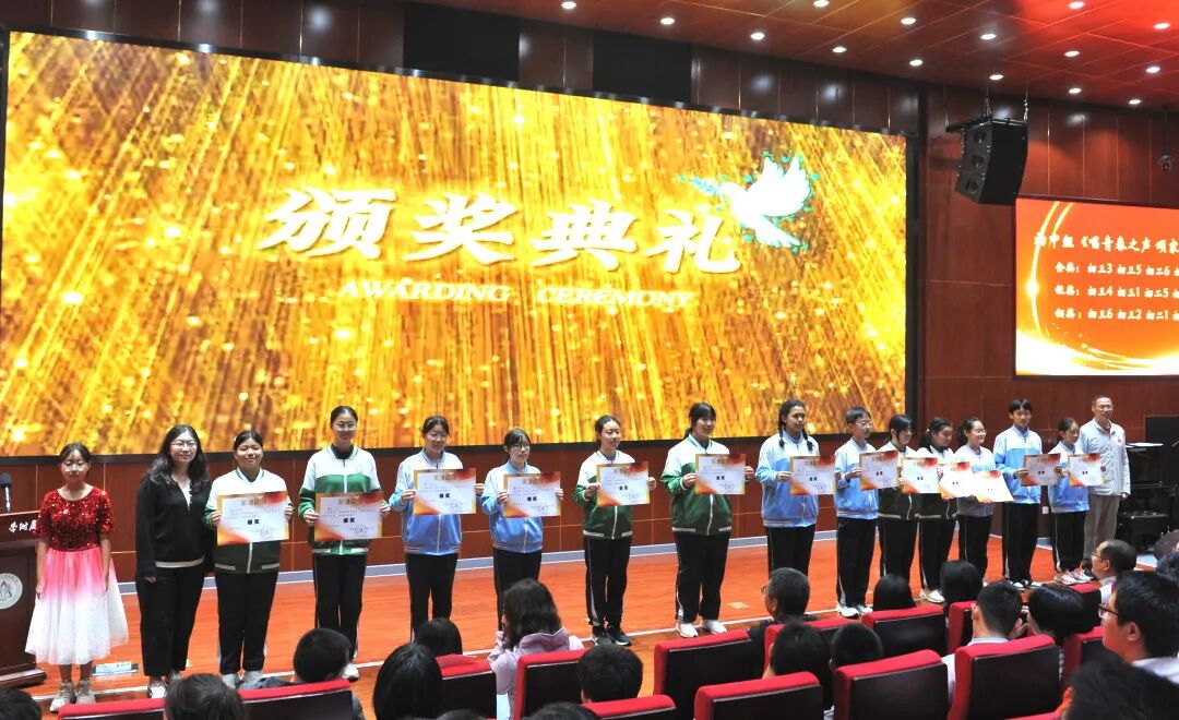 《唱青春之声 颂家国未来》,初、高中组集体项目获奖班级走上领奖台,他们以青春之声所传递的家国情怀将从舞台一直延展到学习生活的每一个环节。