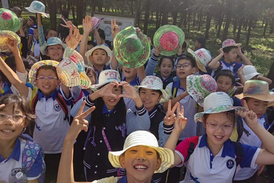 在劳动环节,同学们学习了绿植栽培知识,亲手种下罗汉松,感受净化空气的意义;随后,大家以草帽为画布,发挥想象力绘制五彩图案,将美术课上的色彩知识学以致用。动手实践中,孩子们不仅收获了专属作品,更体会到创造与合作的乐趣。