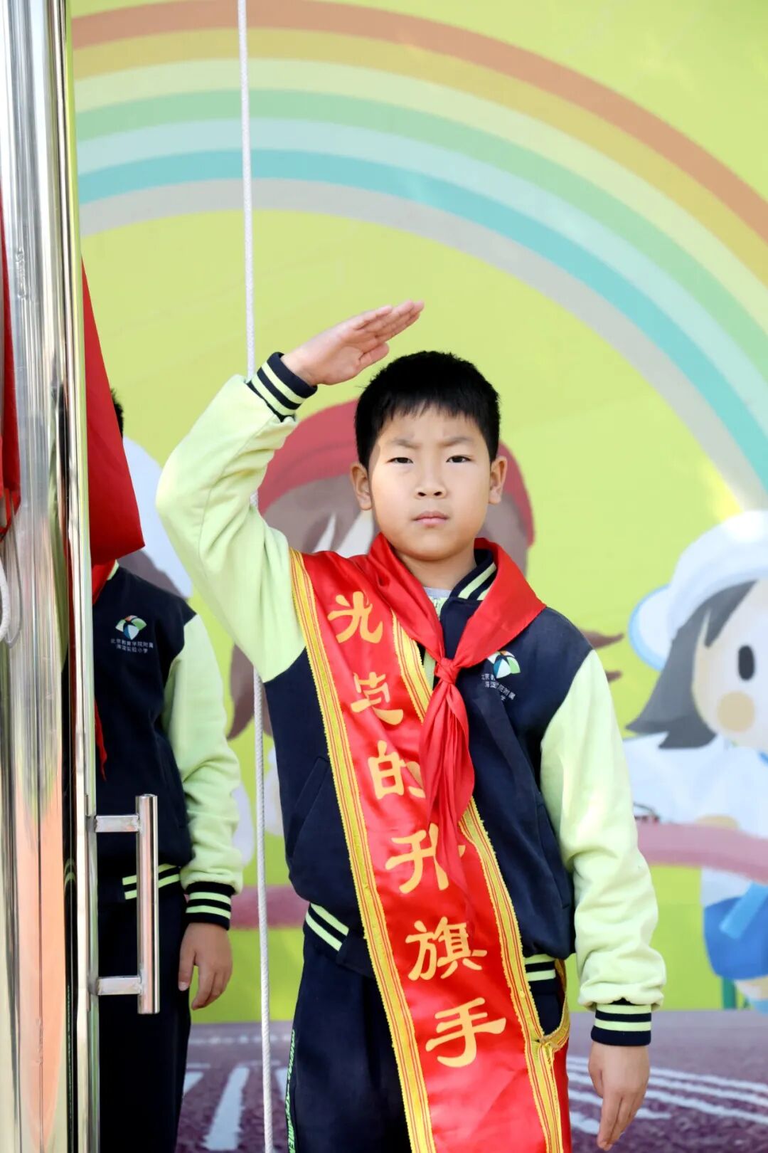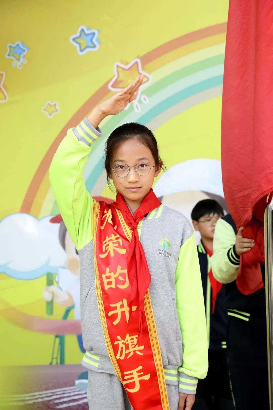 担任升旗手的是黄新雨和崔澜馨。