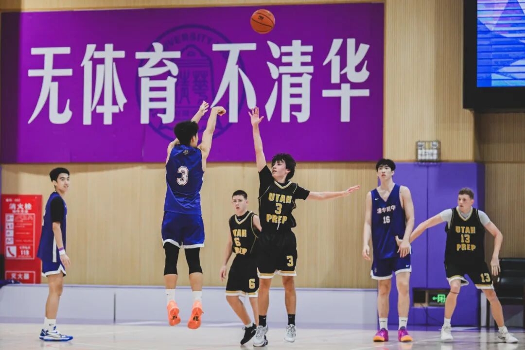 清华附中男篮队员与犹他预科学院队员进行了精彩的比赛。快速传切、精准三分、果断篮板争夺,每一个精彩瞬间都引发现场欢呼。赛场上,附中队员将对母校的热爱融入每一次攻防,美国队员同样展现出拼搏精神,双方在赛场内外的尊重与理解,成为最鲜活的“国际视野”教育课。