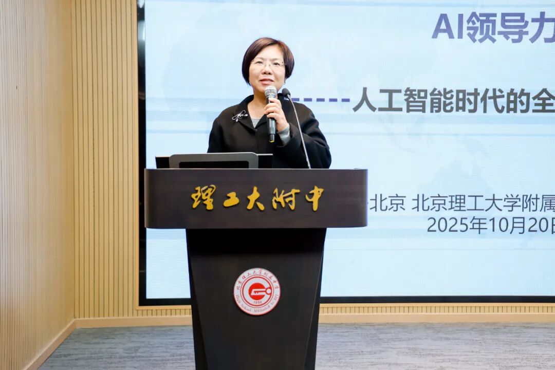 北京理工大学附属中学校长王海霞以《AI领导力——人工智能时代的全人教育新挑战》为题,结合学校75年办学积淀与教育实践,作了主题报告。