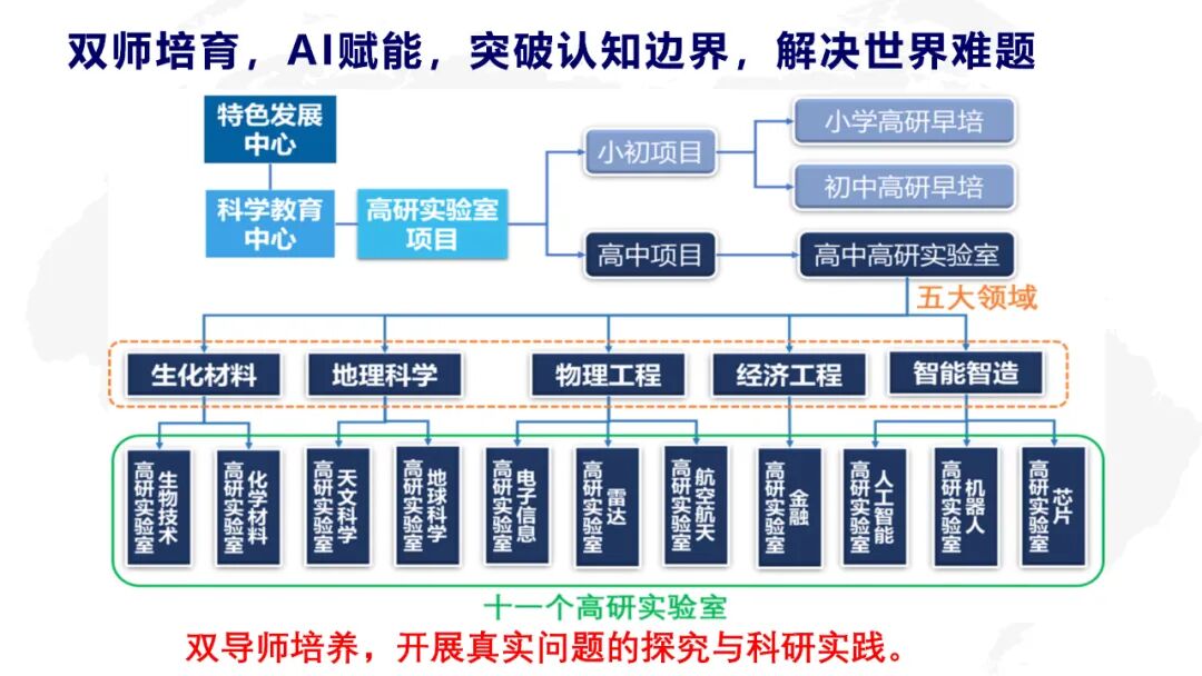 学校以高研实验室为平台,组建校内外导师团队,通过过程性评估科学选拔学生,培养兼具民族自豪感、家国意识与明辨求真能力的未来领军人才