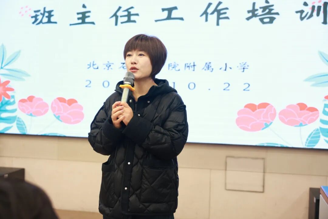 培训第一部分,李主任针对班级管理、家校社协同、学生安全三方面作培训。李主任强调要做好班级管理,必须“抓细节、立规矩”,当好学生成长路上的引路人。她要求:班级管理要落实到实处,对学生的仪容仪表、文明礼仪、集会队列、课堂表现和主人翁责任意识等,班主任要常抓不懈;明确了家校社协同的重要性;鼓励班主任主动担当,做好家校之间的“桥梁”;积极带领家委及家长志愿者共同致力于建设班集体,真正发挥家校社的协同作用;特别强调,班主任要做学生安全的“守护者”并提出了三个“务必“:安全意识务必“时刻在线”,自身工作务必“无懈可击”,沟通态度务必“真诚耐心”。