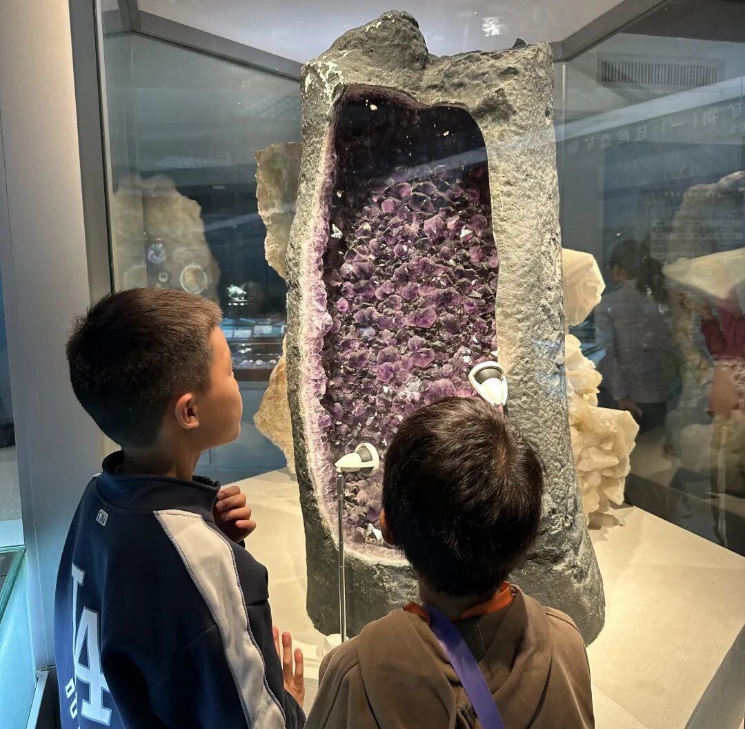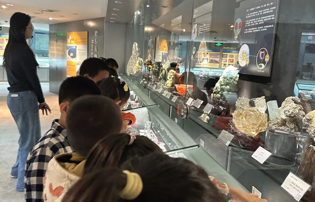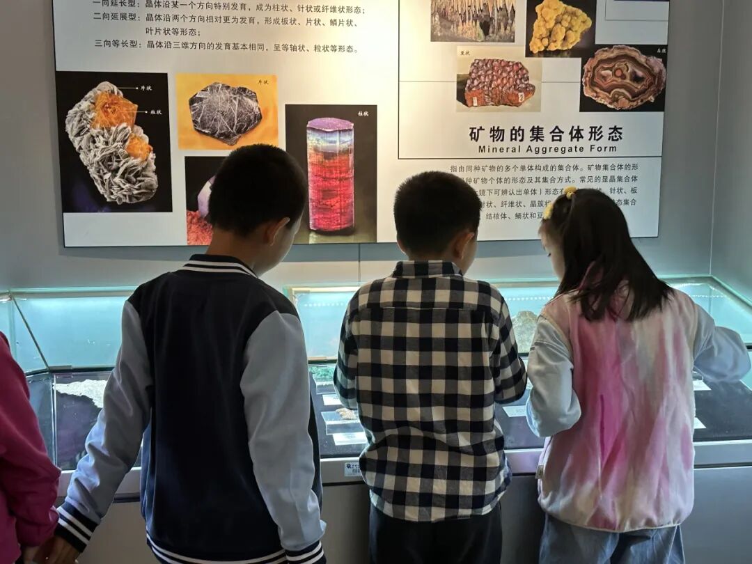 讲解员老师告诉大家,这些美丽的石头都是在地下经过千万年才形成的,是地球创造的“天然艺术品”。原来,看似普通的石头里,藏着这么多美丽的秘密!