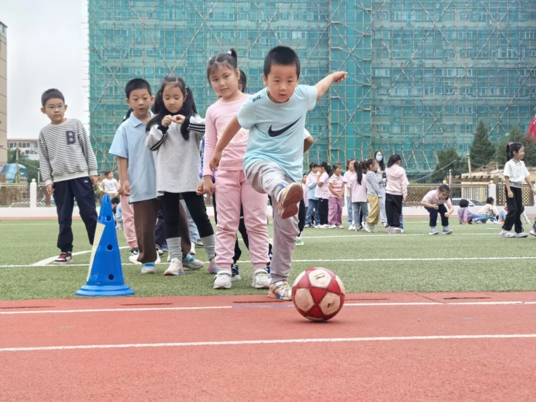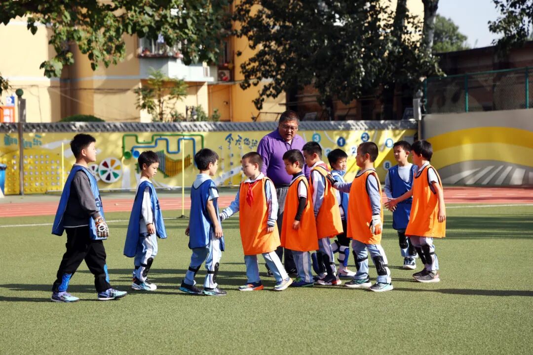 三年级射门比赛里,乐乐踢偏后被同伴轻声安慰,二次射门命中时,潮水般的掌声让他眼里带着泪光的笑容格外灿烂,因为那掌声里藏着纯粹的认可与鼓励。尤为值得定格的是五、六年级带防守射门赛的前奏:球员们向心而站、握拳鼓劲,额角的号码布亦随呼吸加油助威;守门员屈膝弓背,手套反复擦拭草皮,目光牢牢锁定禁区。
