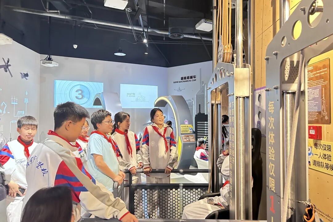 同学们在航天主题空间体验VR飞车、模拟空间站等互动项目,感受航天科技的魅力;随后进入融合力学、交通科技等领域的综合展区,通过操作各类装置,在自主探索中拓宽科技视野;最后在情绪认知、AI互动、探案推理和攀岩等多元项目中自由体验,不同兴趣的同学都能找到属于自己的精彩。这些丰富的跨域活动让同学们在轻松愉悦的氛围中收获知识与乐趣。