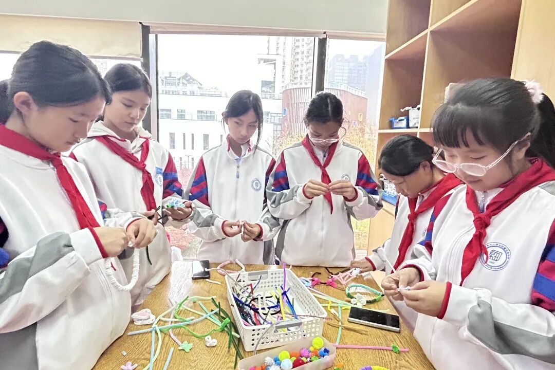 在第三节劳动课上,老师首先向大家介绍了扭扭棒的特性与基本制作方法。随后,同学们以发箍为创作载体,开始了自由设计与制作。课堂上,大家全神贯注,通过捻、绕、折、粘等手法,将普普通通的扭扭棒赋予形态与生命。有的同学编织出绚烂的花朵环绕发间,有的构建立体的星辰与飞船,还有的抽象地表达出心中的未来图景。每一件作品都独一无二,闪耀着个性化的创意光芒。整个过程中,大家不仅锻炼了手眼协调与耐心,更在实践与分享中体会到创造的乐趣与成就感,真正实现了“指尖造物,创艺绽放”。