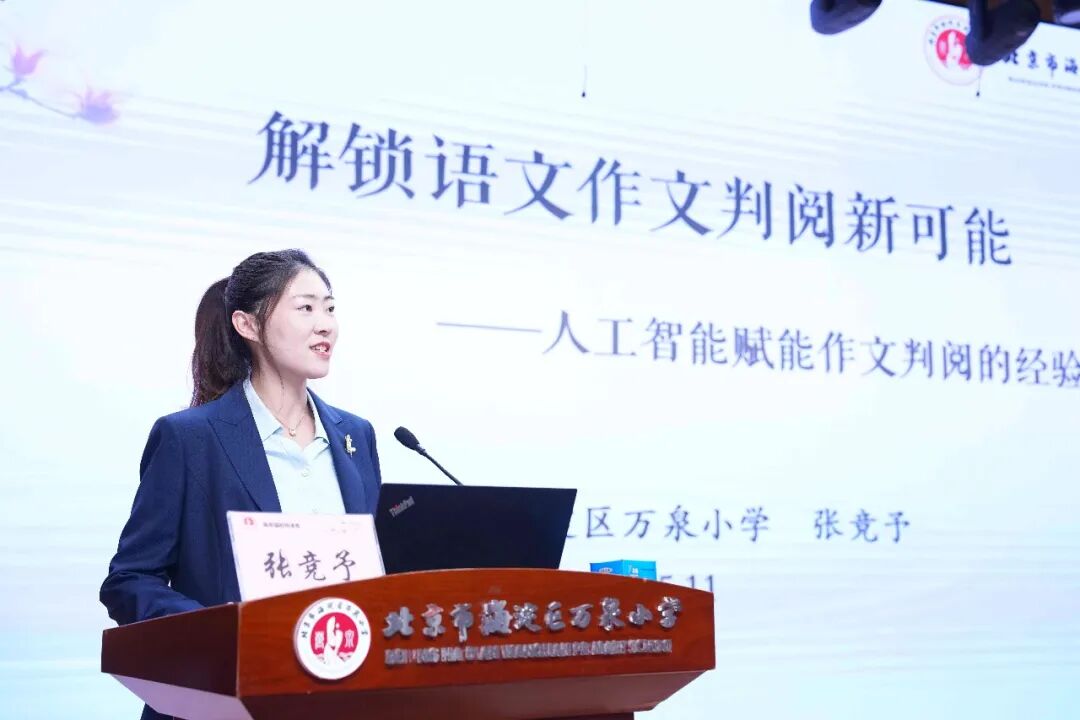 张竞予分享了AI赋能作文判阅的实践成效:AI能快速识别错别字、语病,从语言表达、结构逻辑等多维度开展结构化评价,大幅减轻教师批改负担,让教师更聚焦于打磨学生写作思路。同时她也强调,AI无法替代教师对学生情感、创意的精准解读,唯有“人机协同”才能更好助力学生写作能力提升。
