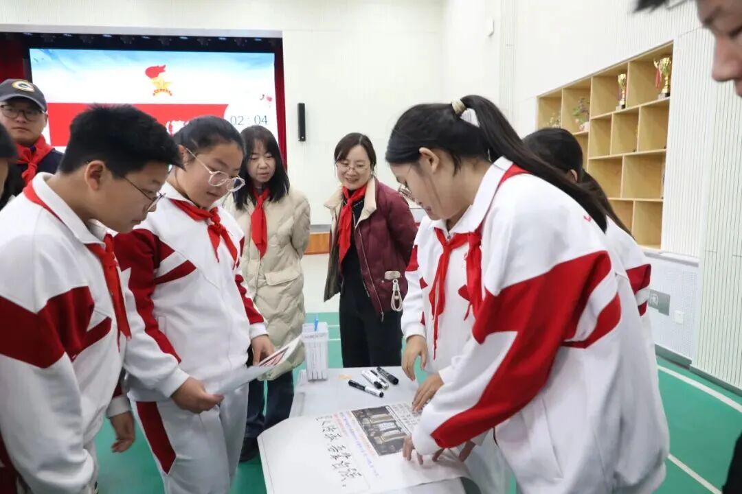 完成打卡任务后,4支小队随机选取了锦囊工具。短暂的准备过后,他们分别以电影配音、诗歌齐诵、书签制作与分享、活动感悟与反思分享等形式,为在场队员、入团积极分子和辅导员们呈现了他们对大钊精神的所思所想。