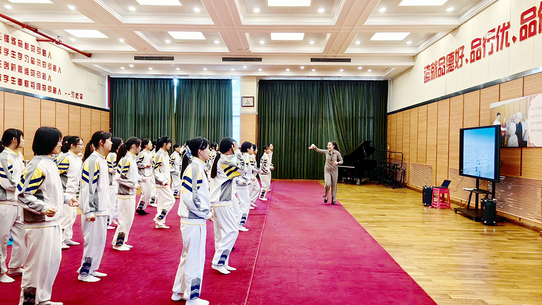 刘舒老师的“闪闪发光大女孩、全身舒缓放松瑜伽课”,聚焦初三学生的身心焦虑,以蜡笔小新趣味导入、呼吸球可视化练习引导学生释放压力,温暖柔软的旁白搭配简单体式,让学生收获身心双重舒缓。还吸引部分其他学科教师跟随刘舒老师一起学习瑜伽。