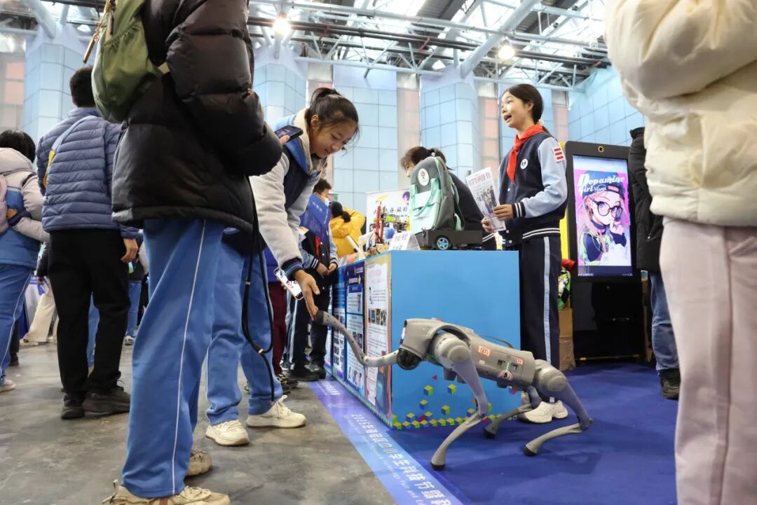 展区内亮点纷呈,既有AI拍报机、3D糖画机、机械狗、校园自助售卖机等高科技设备,增添科技体验感。