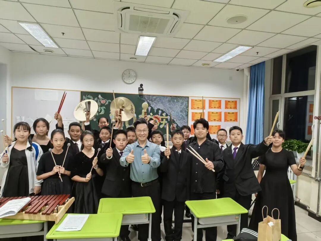 清华附中管弦乐团成立于2022年10月,虽是一支年轻的队伍,却已展现出蓬勃的生机与卓越的成长力:2023年荣获国民音乐教育大会“西洋管弦乐组”展演“卓越演奏奖”;2024年在海淀区学生艺术节中荣获小型器乐合奏展演中学组金奖;王金峰老师也多次荣获校园乐器成果与指挥方面的奖项。此次音乐思政课的成功举办,是乐团发展路上的又一次精彩亮相,更是清华附中教育集团坚持“五育并举”、推动艺术教育与思想政治教育深度融合的生动实践。