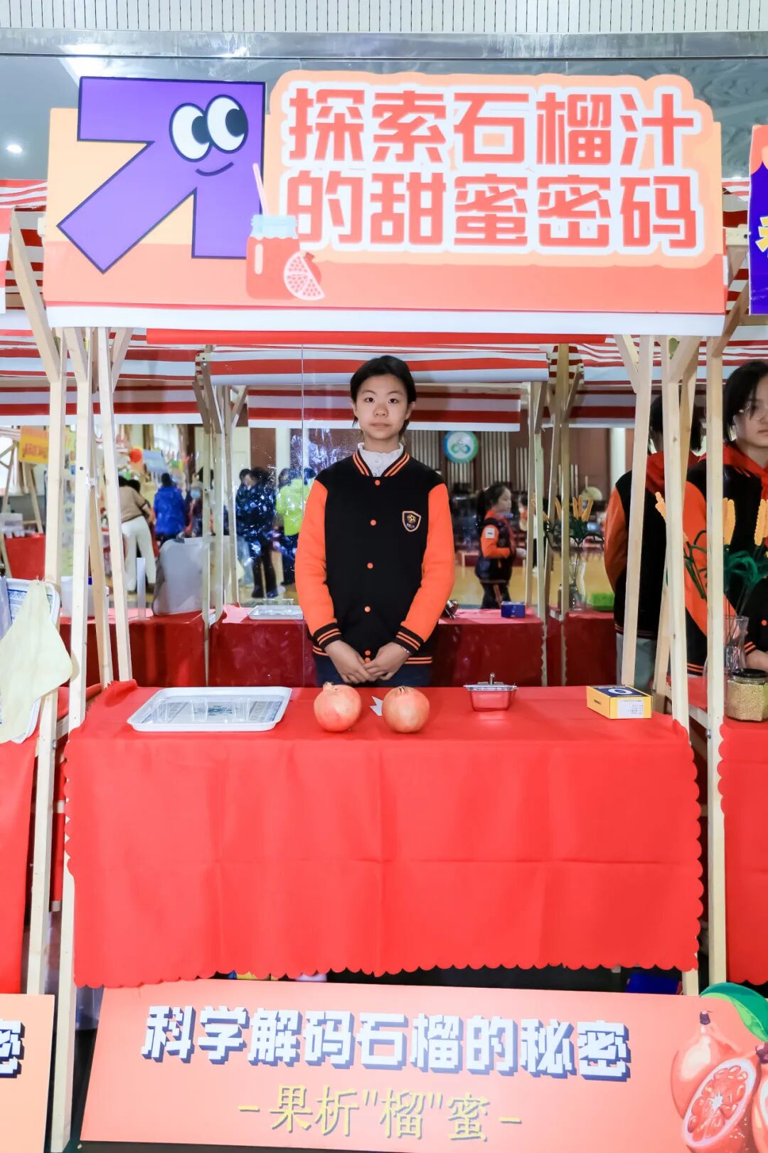 劳动学科的“冬日青苗智慧食”展区,不仅涵盖麦苗种植、青汁制作、制糖与糖画非遗体验,更有一抹亮眼的“科技范儿”——同学们自主设计的“AI麦宝”形象IP正式亮相,将传统农事与数字创意结合,尽显劳动教育的时代内涵。科学学科师生化身“石榴魔法师”,用校园石榴榨出酸甜果汁,解锁石榴扎染的奇妙工艺。英语学科以“School Plants and Me”为主题,引导学生制作双语植物手册,让劳动实践与语言学习巧妙融合。