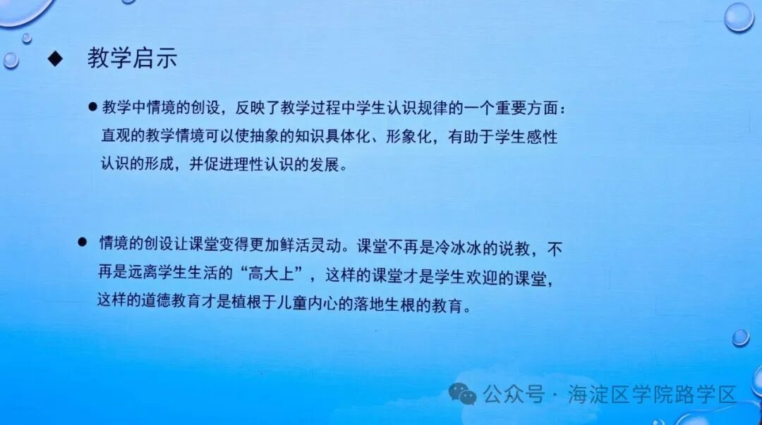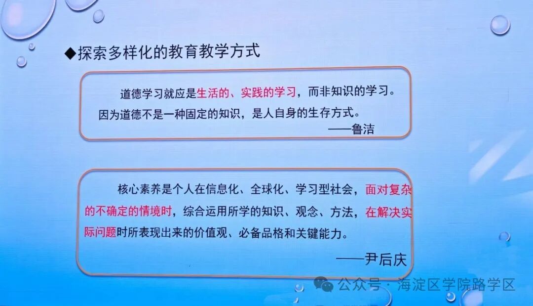 为深入贯彻立德树人根本任务,全面落实《义务教育道德与法治课程标准(2022年版)》精神,2025年12月25日,学院路学区与西三旗学区联合开展道德与法治学科教学研讨活动。海淀区道德与法治学科教研员张玉兰老师、海淀区道德与法治教研基地首席教师张崧老师、学院路学区管理中心副主任杨蕾、西三旗学区管理中心刘启亮部长,以及两学区各校干部与教师代表30余人参与本次活动。活动由张崧老师主持。