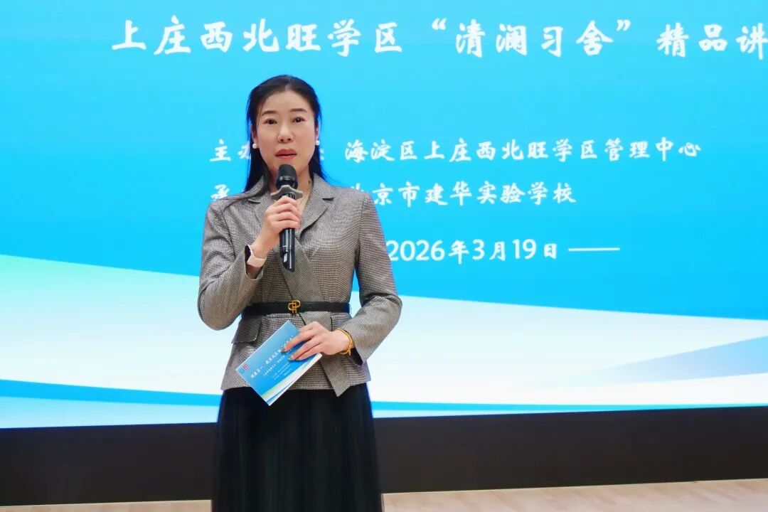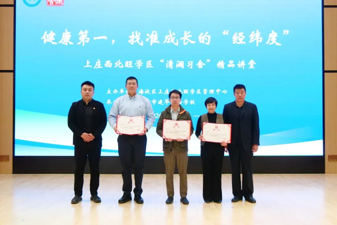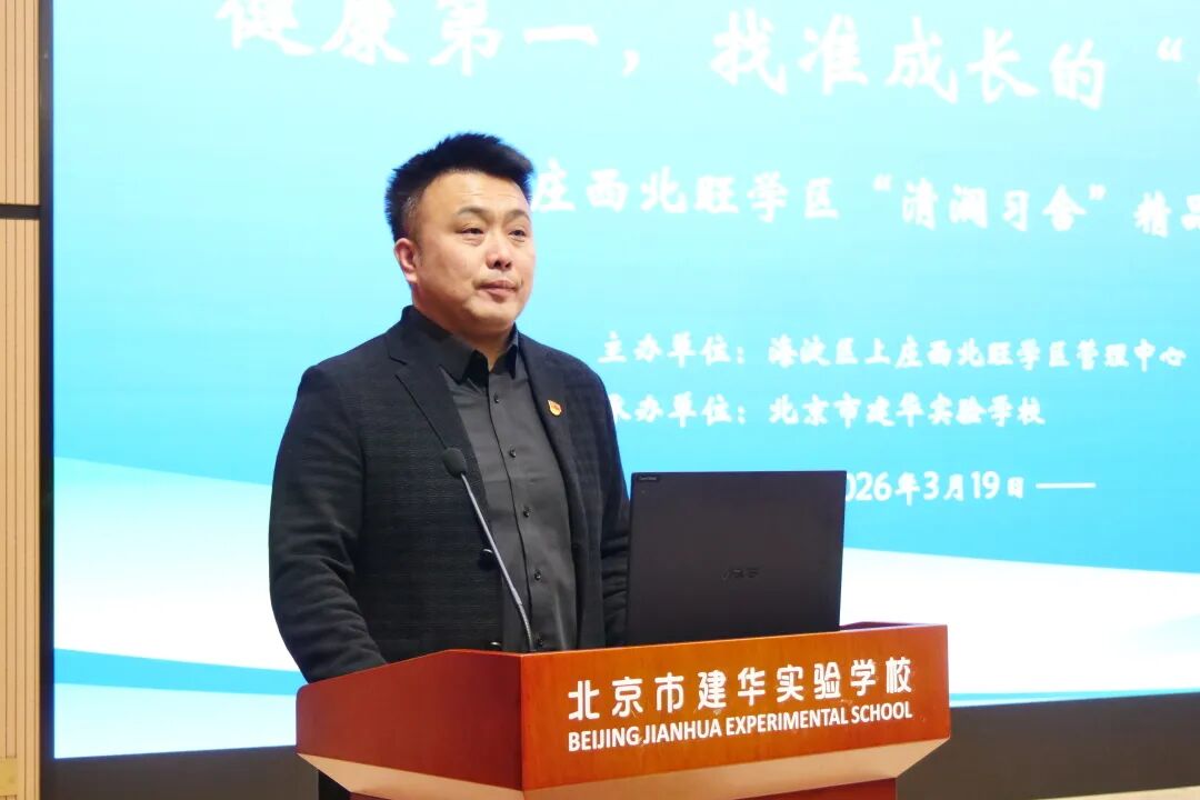 习近平总书记强调:“要坚持健康第一的教育理念,加强学校体育工作,推动青少年文化学习和体育锻炼协调发展,帮助学生在体育锻炼中享受乐趣、增强体质、健全人格、锻炼意志。”为深入贯彻总书记重要指示精神,更好落实教育部提出的“健康第一”教育理念,3月19日下午,上庄西北旺学区“清澜习舍”精品讲堂第二讲在北京市建华实验学校东校区隆重举行。本次讲堂聚焦青少年视力、营养、脊柱、运动等健康议题,特邀北京大学医学博士、北京大学第三医院海淀北部院区院长姜宇,北京同仁医院眼科副主任医师张举,北京协和医院营养科副主任医师、医学博士李海龙,首都体育学院运动科学与健康学院副教授陈晓红,围绕“健康第一,找准成长‘经纬度’”展开专题探讨。海淀区中小学综合实践教育中心书记、主任谷振旺,学区管理中心书记、主任邓然,以及学区中小学校、幼儿园书记、校长、园长、教师和家长代表共同参与。