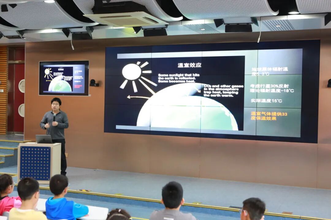 魏博士从《金发姑娘和三只小熊》的趣味故事切入,用通俗易懂的方式,为同学们揭开了温室效应的神秘面纱,讲解了地球适宜生命生存的温度由来,以及人类活动对温室效应的影响,让大家直观看到百余年来全球加速变暖的真实趋势。