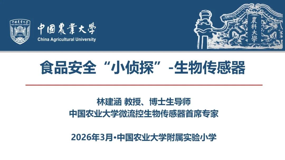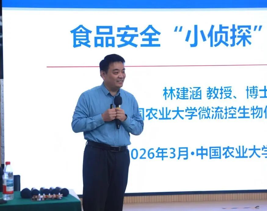 当顶尖科研智慧遇上孩童纯粹的好奇心,一场以科学为钥、以安全为旨的奇妙探索之旅,就此缓缓启程。中国农业大学林建涵教授化身特邀家长讲师,带来题为“食品安全‘小侦探’——生物传感器”的趣味科普家长讲堂。他用深入浅出的语言,把高深的科学知识变得简单易懂,带着孩子们走进神奇的微观世界,在一颗颗稚嫩的心田里,悄悄种下科学探索与健康生活的种子。