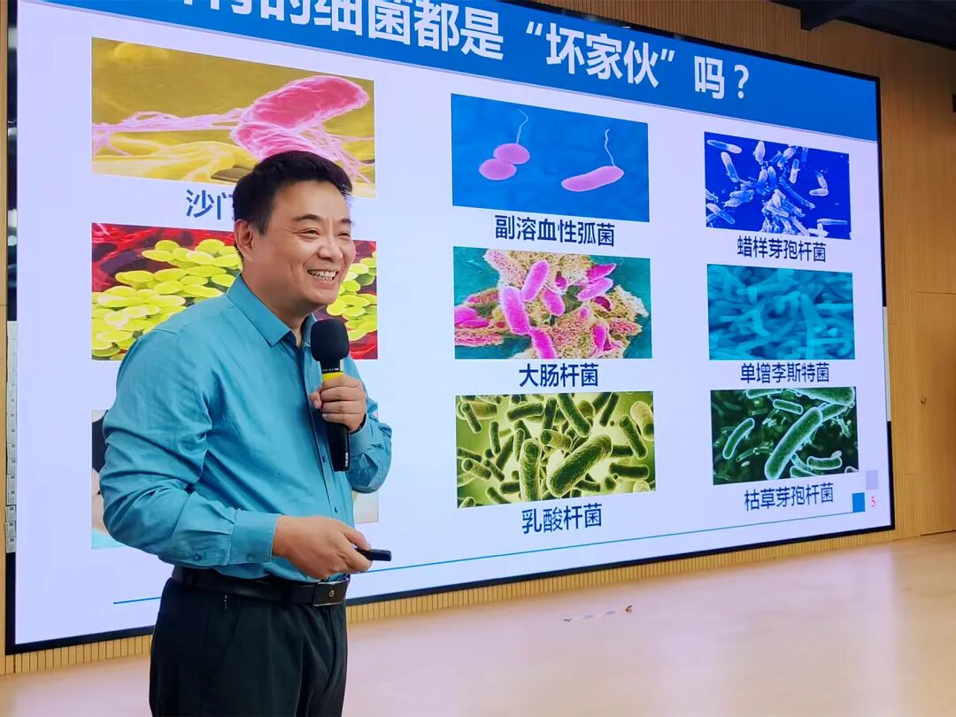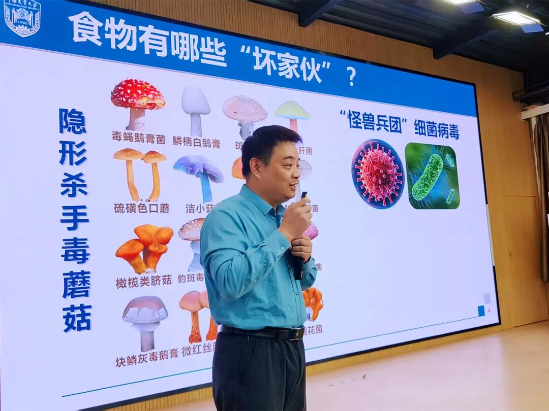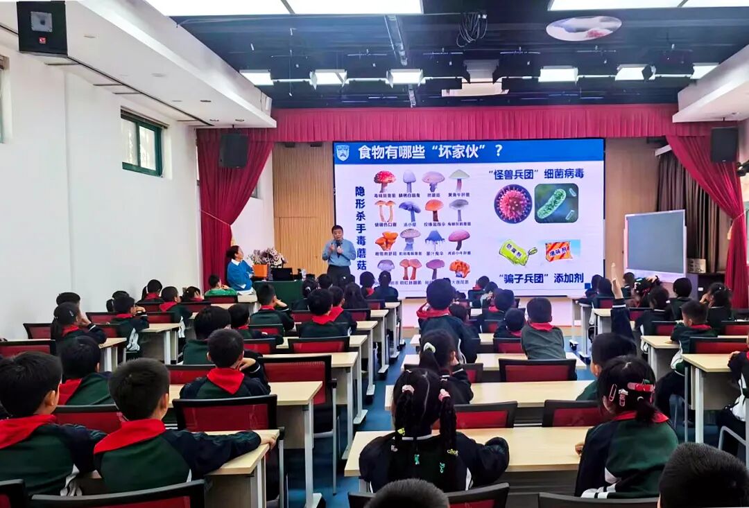 “食物里的‘坏家伙’究竟有哪些?”借助清晰的图片展示,孩子们一眼就辨认出色彩艳丽的毒蘑菇,还主动联想到有害细菌病毒、违规食品添加剂等潜藏的食品安全隐患。林教授适时纠正孩子们的固有认知,耐心讲解道,微生物并非全是“敌人”,肠道内的有益菌群能助力身体消化吸收,而那些真正威胁健康的有害物质,一旦伴随食物进入体内,便可能引发腹痛、发热等不适,甚至诱发严重疾病,孩子们个个端坐凝神,把这些关键知识牢牢记在心底。