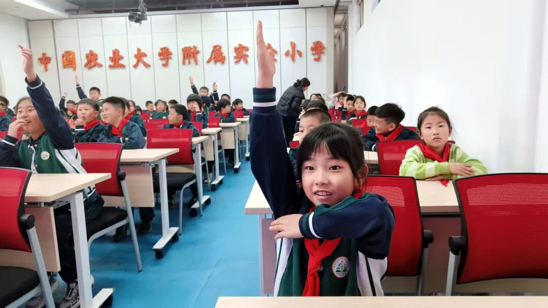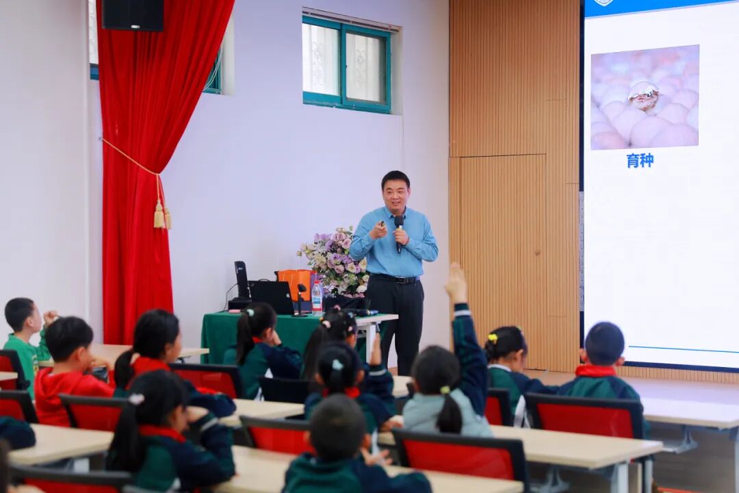 “我们餐桌上的食物都有哪些?”讲座开篇,林建涵教授便抛来贴近日常的暖心提问,瞬间拉近了与孩子们的距离,台下小身影纷纷踊跃举手,米饭、鲜蔬、瓜果、肉蛋、海鲜等熟悉的食材从童声里脱口而出,原本安静的课堂瞬间被热烈活泼的氛围填满。林教授从田间地头的育种栽培、生态养殖,到标准化加工与冷链运输,再到商超货架、自家餐桌,每一环的讲解都紧紧连着食品安全的底线。他告知孩子们,食物走过的路途越漫长,越容易受到有害因素的侵扰。