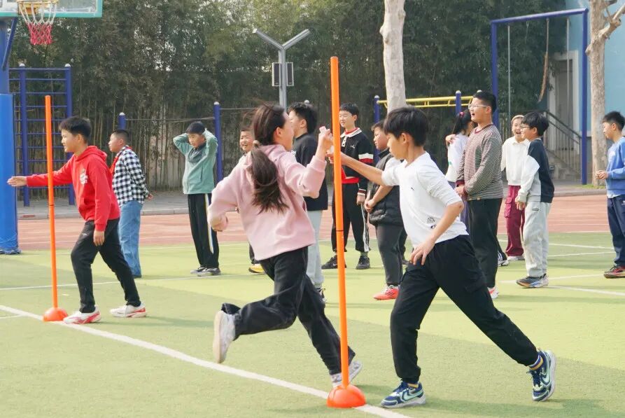 “完全人格,首在体育。”学校始终坚持“健康第一”的教育理念,将阳光体育运动作为学生全面发展的重要一环。迎面接力赛,作为一项团队协作与个人速度结合的经典项目,既能锻炼孩子们的灵敏素质和奔跑能力,又能培养班级凝聚力和顽强拼搏的精神。一根小小的接力棒,传递的是健康,是信任,更是快乐!