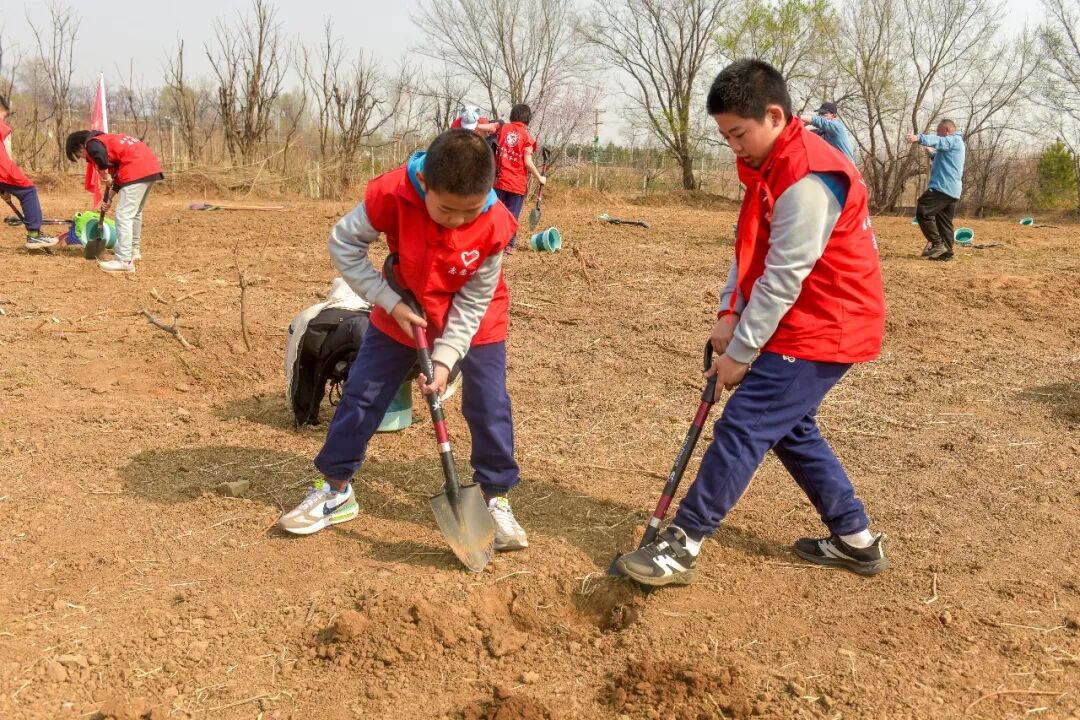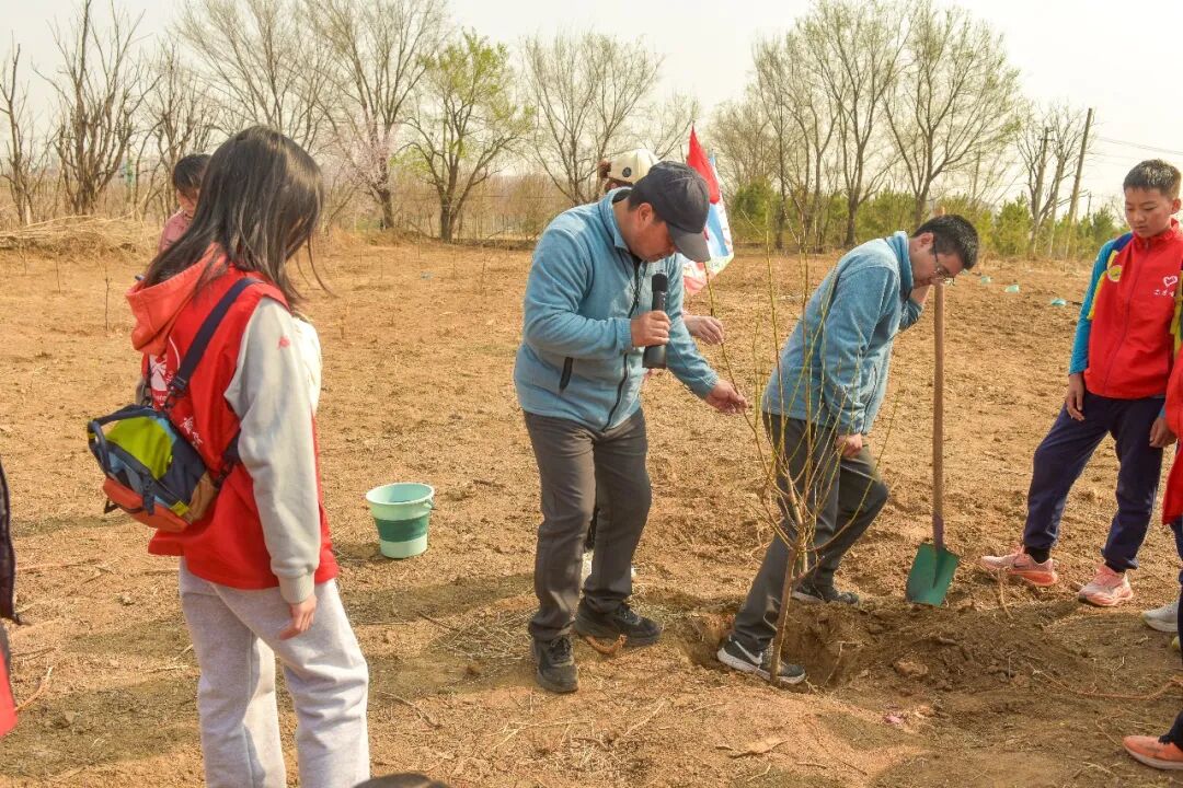植树环节,同学们认真聆听植树的意义以及种植方法后,分工明确、配合默契,挥锹铲土、扶正树苗、浇水固根,一个个忙碌的身影充满活力,亲手栽下守护绿色的美好心愿。