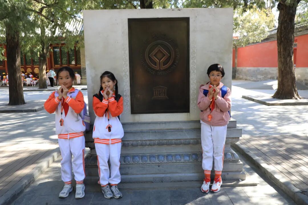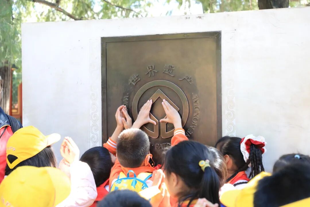 研学尾声,孩子们在东宫门前,一起认识了世界文化遗产的标志。老师讲解着标志的寓意,一颗守护文明、传承匠心的种子,在孩子们心中悄然种下。这次行走的课堂,不仅让他们触摸了历史,更在观察、思考、协作与欢笑中,实践了“健康第一”的理念。